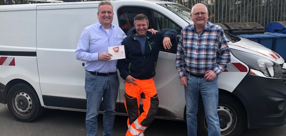 Dies nahmen Bürgermeister Matthias Pfeifer und Hauptamtsleiter Siegfried Richter zum Anlass, Rolf Riedel zu diesem internen Jubiläum zu gratulieren, den Dank für die jahrelange Treue auszusprechen und ihm ein kleines Dankeschön in Form von etwas Süßem zu überreichen.